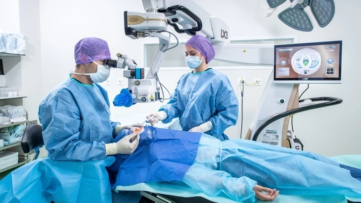 Die Katarakt kann sich nicht mehr von selbst zurückbilden oder mit Medikamenten aufgehalten werden. Die einzige wirksame Behandlung ist ein operativer Eingriff, bei dem die getrübte Augenlinse durch eine Kunstlinse ersetzt wird. Unsere Spezialist:innen führen diese Routineoperation täglich an unseren verschiedenen Operationsstandorten durch.